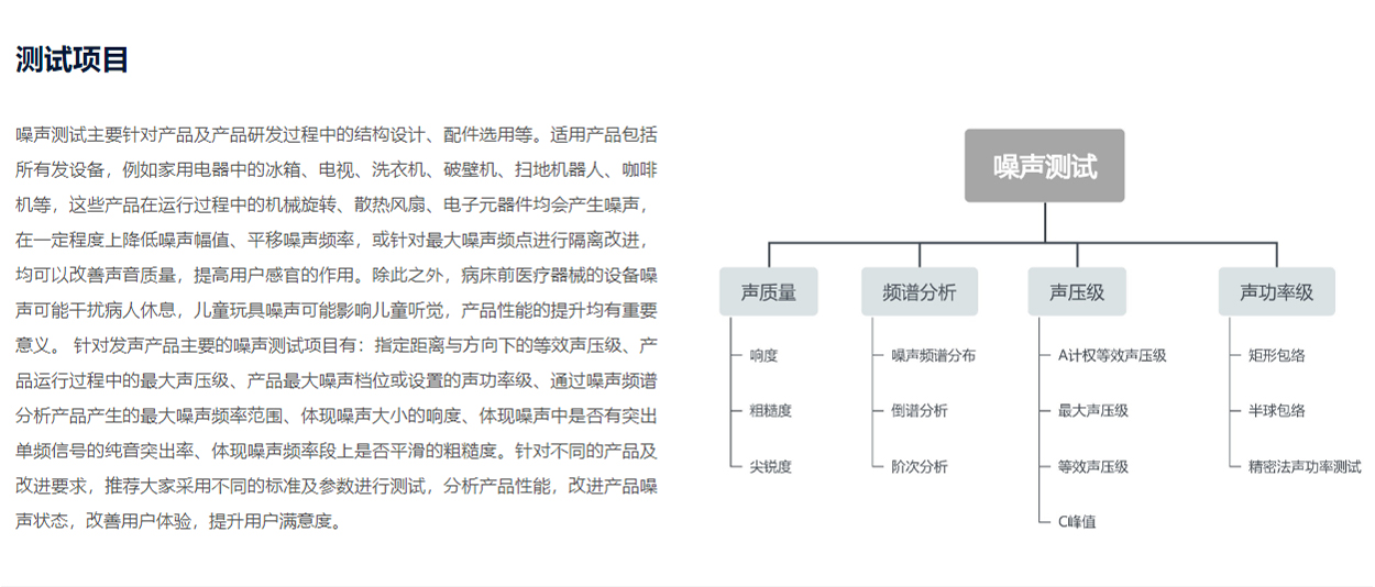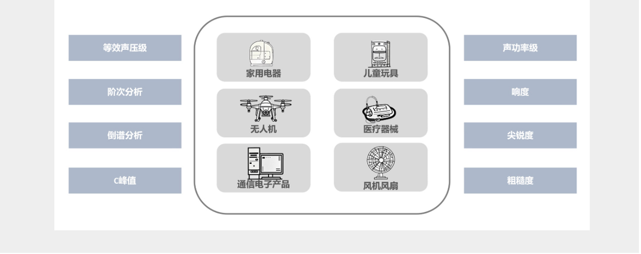 随着制造业的迅速发展,人民生活水平的不断提高,对产品性能的要求也精益求精,在考虑产品合规性、安全性的同时,噪声大小成为了衡量产品满意度的一个不可忽视的指标。 放在床头的适配器是否有令人烦恼的噪声?吹风机在使用过程中是否声音太大?在安静的读写状态 ,台灯是否会有干扰思路的噪声?键盘敲击的声音,插拔件安装的声音,病床前呼吸机的声音等等,都是影响用户体验的重要指标。无人机在录制视频过程中,如果想同步实现音频的录制,那么机体飞行的噪声越小,后续降噪处理的难度也可以随之减小。